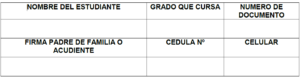 Si no envía la información por el correo electrónico o no entrega diligenciado el formato en la fecha estipulada, la institución dará por entendido que su hijo NO continuará estudiando en este colegio en el año 2021 y se dispondrá del cupo.